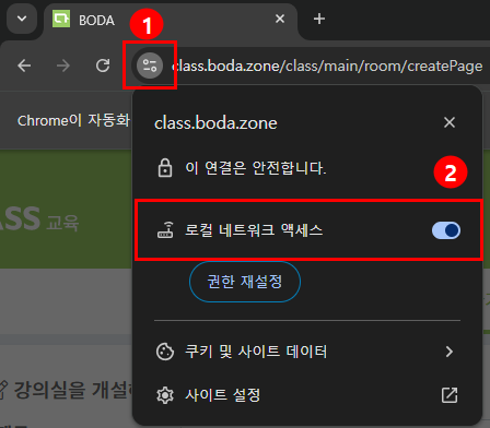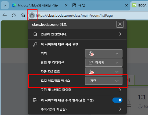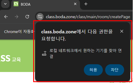 최신 웹 환경에서 화상솔루션 접속 시 ‘로컬 네트워크 연결’ 허용을 요청하는 팝업이 표출됩니다.